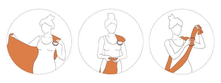 – Envolve tu cuerpo con la tela. Pasala por tu espalda de manera ordenada hacia el lado contrario.