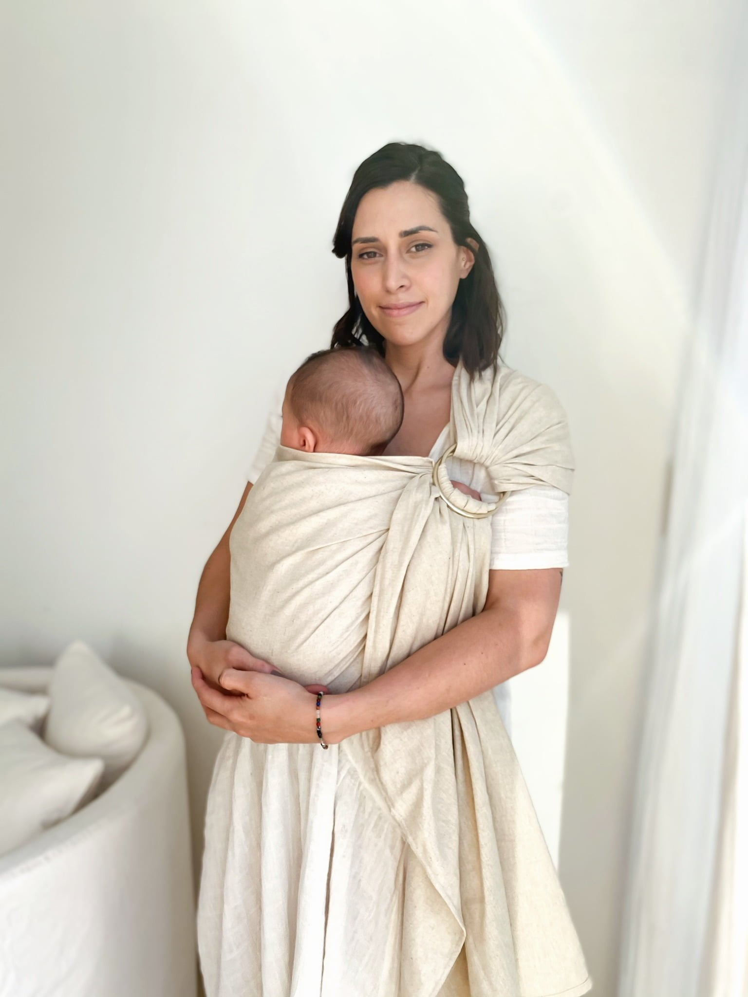 ━ La bandolera de anillas es un portabebé unitalla, están diseñadas para ser accesibles a todos. Podes compartir la bandolera con distintos adultos que deseen portear al bebé.