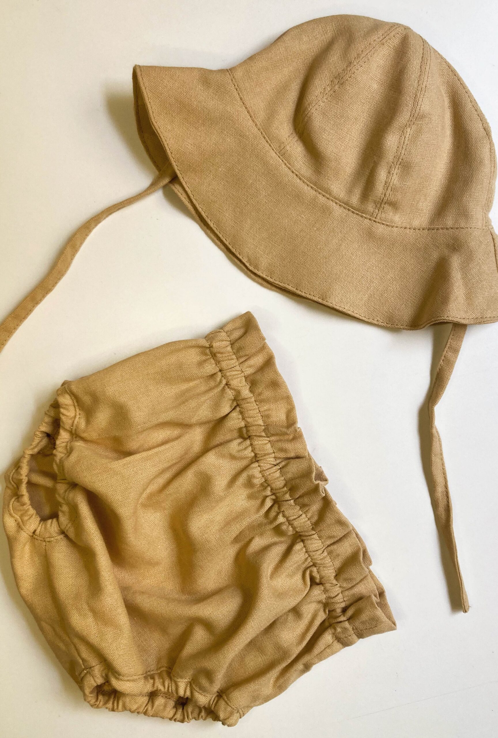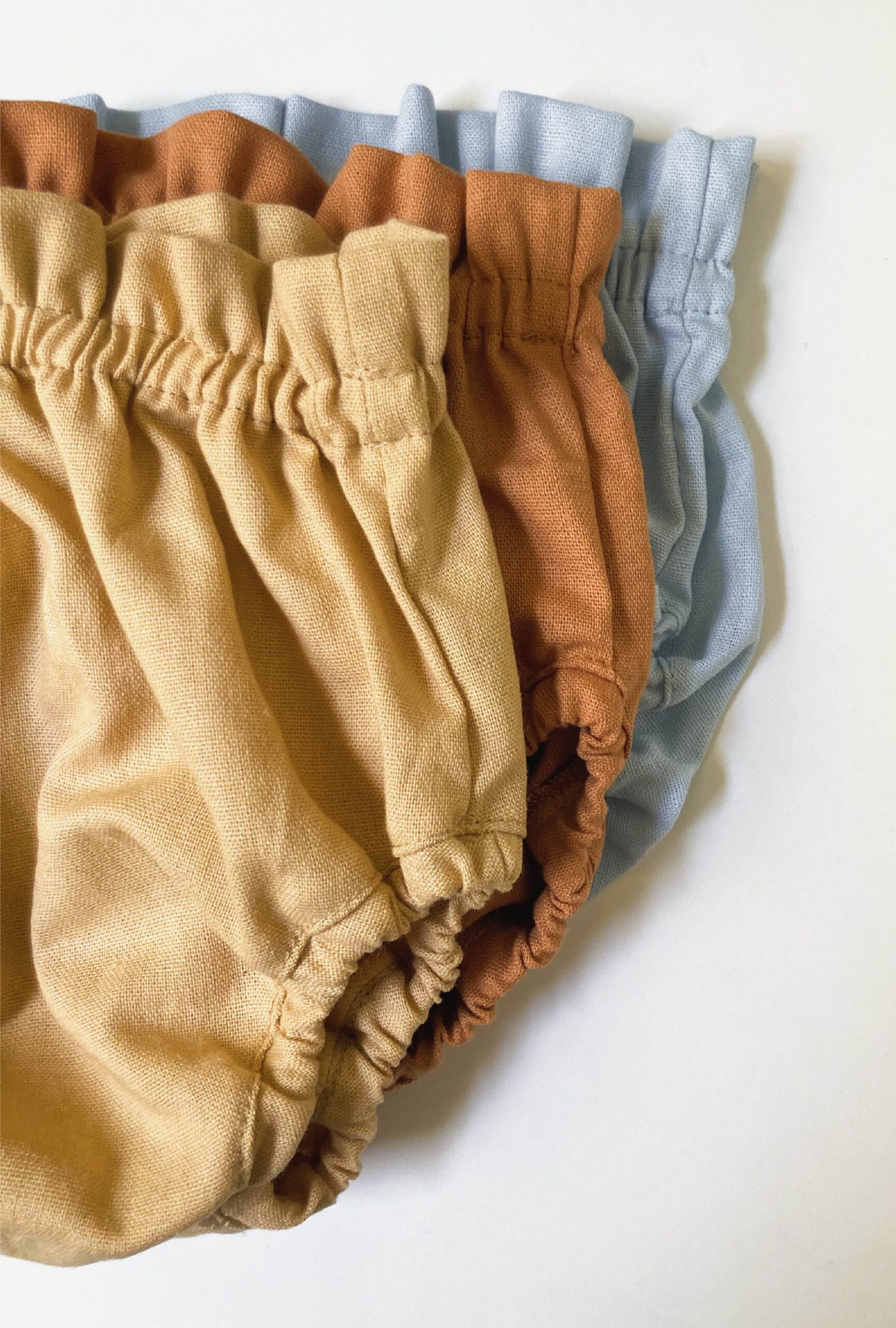 El bombachudo esta confeccionado en lino liviano con elástico en cintura y piernas.